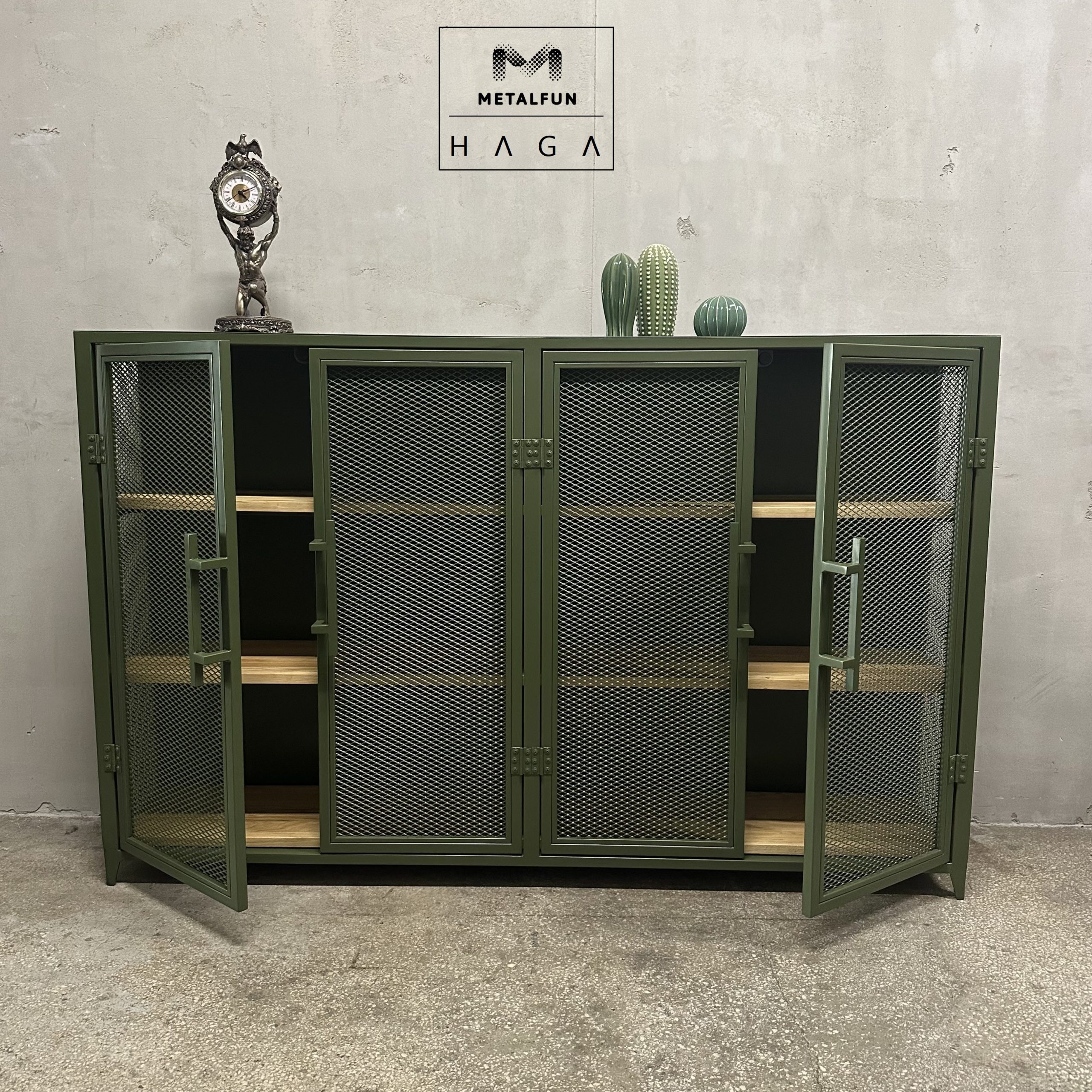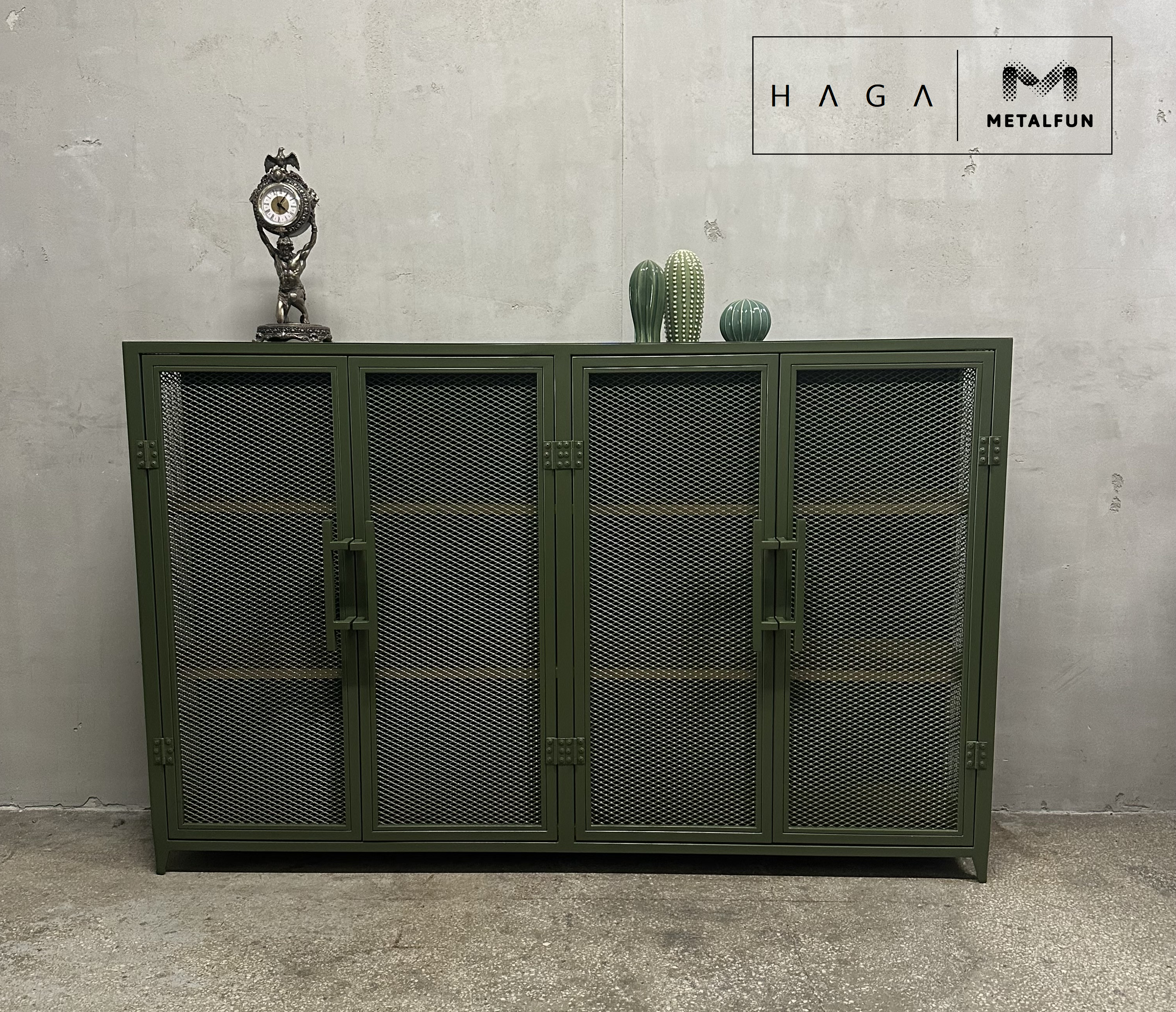 Charakterystyczną cechą, każdego modelu HAGA to elegancka szata wykonana z siatki cięto-ciągnionej. Wnętrze komody, podzielone jest, na 3 równe przestrzenie magazynowe, w zależności od wyboru rodzaju półki, przestrzeń można dowolnie zagospodarować.
